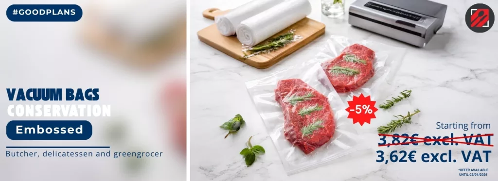 Vacuum-packed, embossed conservation bags are products used in the butcher's, catering and private sectors to preserve your food.