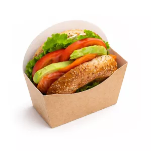 Además de prácticas, nuestras fundas de cartón son muy higiénicas y garantizan un embalaje limpio y seguro. Gracias a esta solución, podrá ofrecer a sus clientes una experiencia agradable, tanto si quieren llevarse crujientes patatas fritas, un sabroso crêpe o wraps y tacos gourmet. Elija nuestras fundas de cartón para una presentación impecable y un embalaje profesional, diseñado para satisfacer las necesidades de su empresa